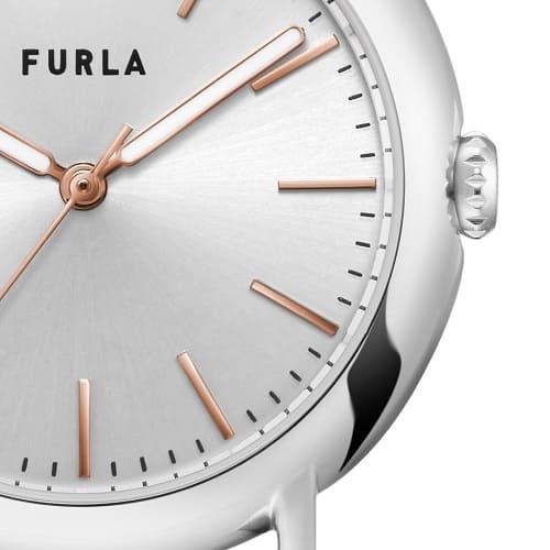 ・FURLA EASY SHAPE (フルラ イージーシェイプ)『FURLA EASY SHAPE (フルラ イージーシェイプ)』は、コロンとしたフォルムと、ミントカラー×シルバーのカラーリングが、春夏の装いを爽やかにまとめます。シンプルなバーインデックスと程よい太さの時針・分針が高い視認性を実現。フェミニンなスタイルはもちろん、いつものカジュアルスタイルも女性らしく、コーディネートをグッと格上げしてくれます。